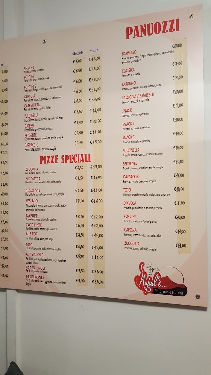 The menu at Pizzeria Braceria Napul'é offers a delightful selection of dishes that highlight the rich flavors of traditional Italian cuisine with a touch of innovation. The Panuozzo, a warm sandwich filled with savory ingredients, stands out as a hearty and satisfying choice for any guest looking for something different. For pizza lovers, the classic Margherita Pizza never disappoints, delivering a perfect balance of tomato, mozzarella, and fresh basil. Those craving a more indulgent option will enjoy the Capricciosa Bianca, a white pizza topped with a mix of creamy cheeses and artichokes. The Pizza Casareccia, with its combination of fresh ingredients and rustic charm, offers a true taste of Italy. For seafood enthusiasts, the Gamberetti pizza, featuring succulent shrimp, and the Gamberi option, also brimming with tender prawns, bring the flavors of the coast straight to the plate. For a robust, flavorful choice, the Siciliana Con Salsiccia Scaglie offers a delicious combination of sausage and Sicilian influences, sure to leave a lasting impression. Every dish, whether pizza or Panuozzo, is crafted with care, showcasing both tradition and contemporary flair, ensuring a memorable dining experience at this charming pizzeria.